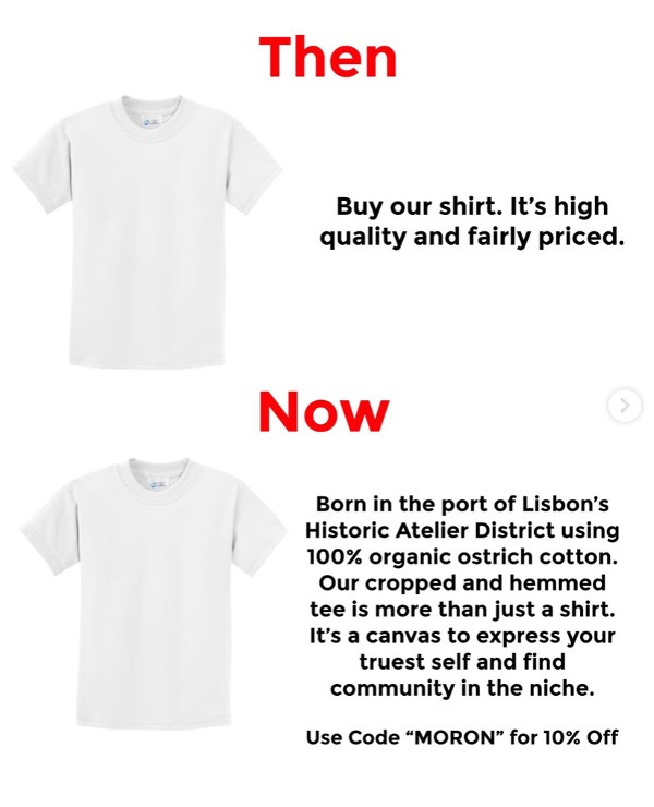 Always true, increasingly amplified – the story around the shirt matters more than the shirt.