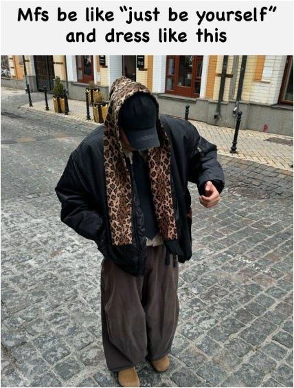 That’s the irony: as clothing becomes pure signifier beyond product, the depth of the message shrinks. The knowledge flex trumps the meaning – the cachet over the context. W. David Marx described it well: most fashion trends are not even trends, they’re fads – existing solely because of their novelty and stripped of any meaning. They basically say nothing beyond “I know what’s on hidden.ny right now.”