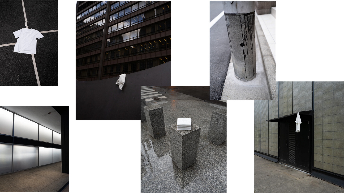 Ground the flex through strong visual narratives. Lady White Co’s core is the most neutral piece of clothing you can go for: a white tee. How can you build a myth with something so clean? Through context. The ongoing “LW101T” editorial shows them in ever-new environments but with a consistent visual language – rough brutalist chic with a slight surreal touch. On its own, the white tee is a floating signifier, open to different interpretations – but the mise-en-scène charges it up.