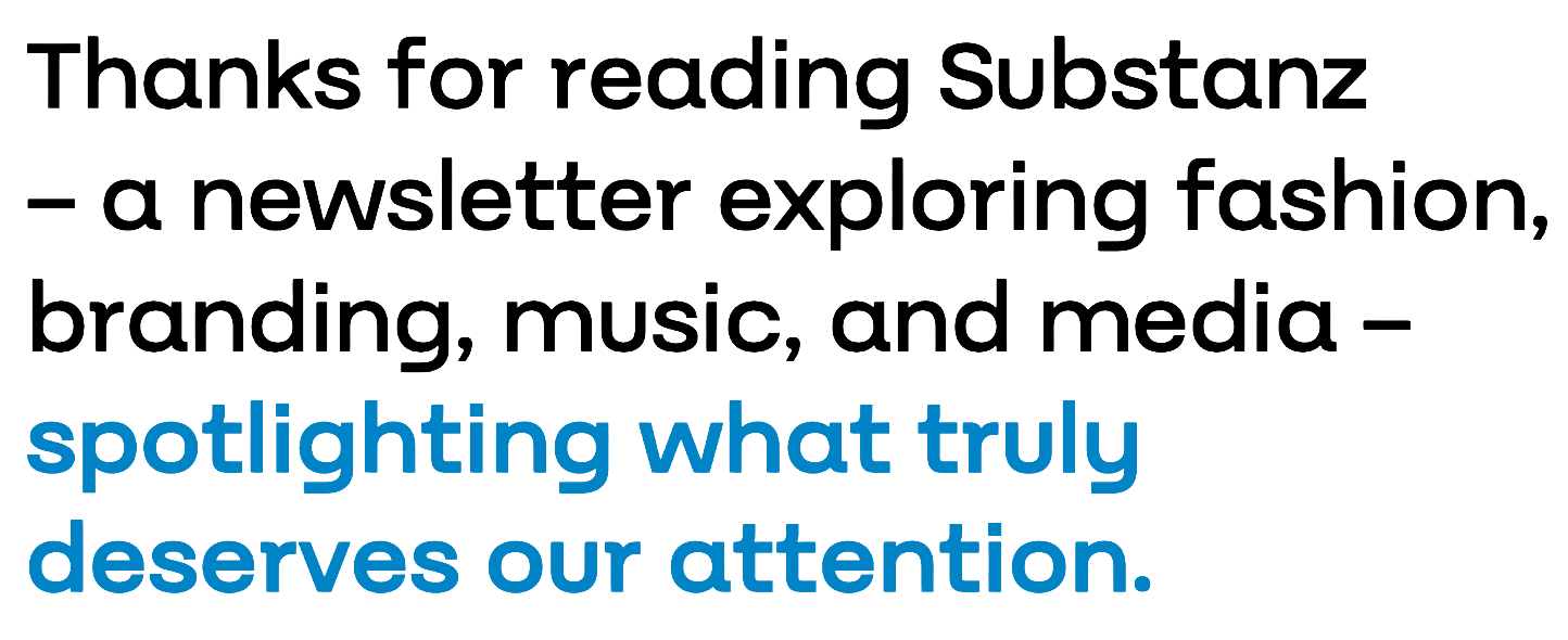 As I wrote in my last Substack, clothing is always a status signal, no matter how clean your look is — this is simply the latest evolution. To flaunt cultural capital, the cues have become quieter: from a Supreme Box Logo to a plain Merz B. Schwanen tee. A subtle flex is still a claim to status through cultural codes, meant to separate those who can read them from those who can’t. Databutmakeitfashion just wrote a great piece on this, too. Meanwhile, I’m happy my denim has a third stitch on the pocket — just enough to show they’re Our Legacy to those who know.