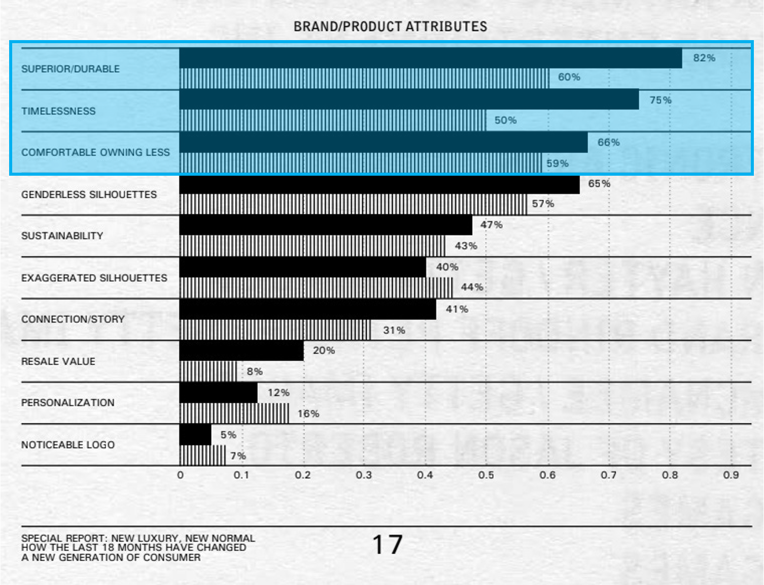 Vogue Business stated in 2024 that searches for ‘capsule wardrobe’ increased by 60% in the last 12 months, whereas searches for ‘uniform’ were up 42%. Already in 2021, Highsnobiety noticed changing preferences in their early adopter fashion crowd fueled by the pandemic. Their latest report states ‘luxury shoppers are smarter than ever – and they want their clothes to be, too’.
